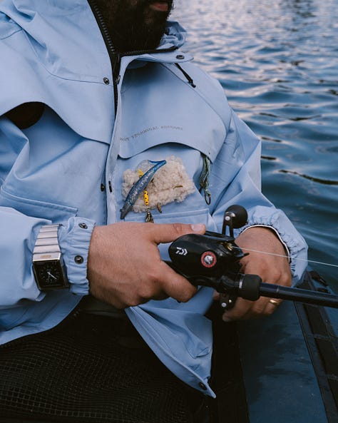 I’m not sure it’ll be as widely adopted as more “grounded” outdoor hobbies, but fishing, sailing, or even watersports still feel largely unexploited as sources for cool gear. Same utilitarian logic, same technical approach to clothing, just wetter?